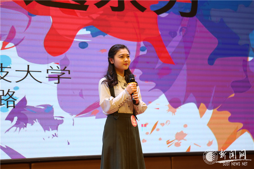 我校劉璐璐同學(xué)在自由演說(shuō)中以《為熱愛(ài)不遺余力》為題,講述了“當(dāng)代蔡倫”、陜科大二級(jí)教授張美云重返科研教學(xué)一線(xiàn),秉持對(duì)特種紙事業(yè)的熱愛(ài)和在學(xué)術(shù)上的堅(jiān)執(zhí)追求不斷進(jìn)取的感人故事;也分享了自己作為一名校廣播臺(tái)主播在做節(jié)目過(guò)程中,因?yàn)闊釔?ài)所以堅(jiān)持,因?yàn)閳?jiān)持所以沒(méi)有辜負(fù)這份熱愛(ài)的成長(zhǎng)歷程。劉璐璐在演說(shuō)中說(shuō):“肩上有使命才懂得擔(dān)當(dāng),內(nèi)心有熱愛(ài)才不遺余力。因?yàn)槲业臒釔?ài),我用聲音傳遞思想傳遞溫暖,我也希望能和更多有志青年一道,有所熱愛(ài),有所擔(dān)當(dāng),為了這份熱愛(ài)不遺余力,為了這份擔(dān)當(dāng)勇往直前?!痹谥黝}辯說(shuō)環(huán)節(jié),圍繞“不靠譜的夢(mèng)想該勸阻嗎?”的題目,劉璐璐作為反方一辯思路清晰、表達(dá)精準(zhǔn),進(jìn)行了精彩的辯題立論。