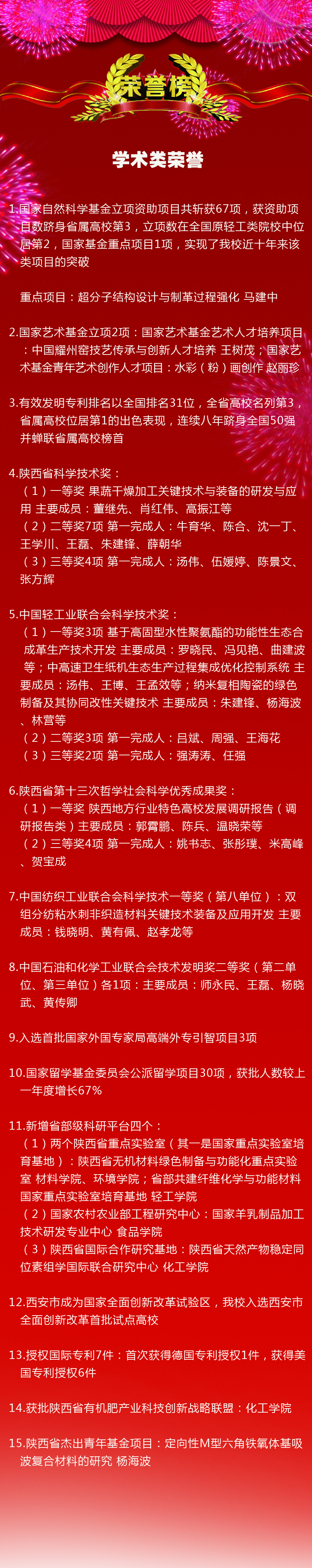 舊歲已展千重錦,新年再進(jìn)百尺竿。2019年伊始,我們總結(jié)梳理一年來(lái)全校師生的收獲與喜悅,激勵(lì)全體陜科大人以更加堅(jiān)定的決心、更加昂揚(yáng)的斗志,奮楫揚(yáng)帆、闊步前行,共同抒寫(xiě)學(xué)校內(nèi)涵發(fā)展和“雙一流”建設(shè)新篇章。