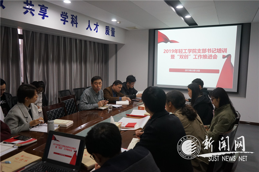 3月12日下午,輕工科學(xué)與工程學(xué)院召開2019年黨支部書記培訓(xùn)及“雙創(chuàng)”工作推進(jìn)會,學(xué)院黨委書記李新平、全體黨支部書記參加了會議,會議由院黨委組織員主持。