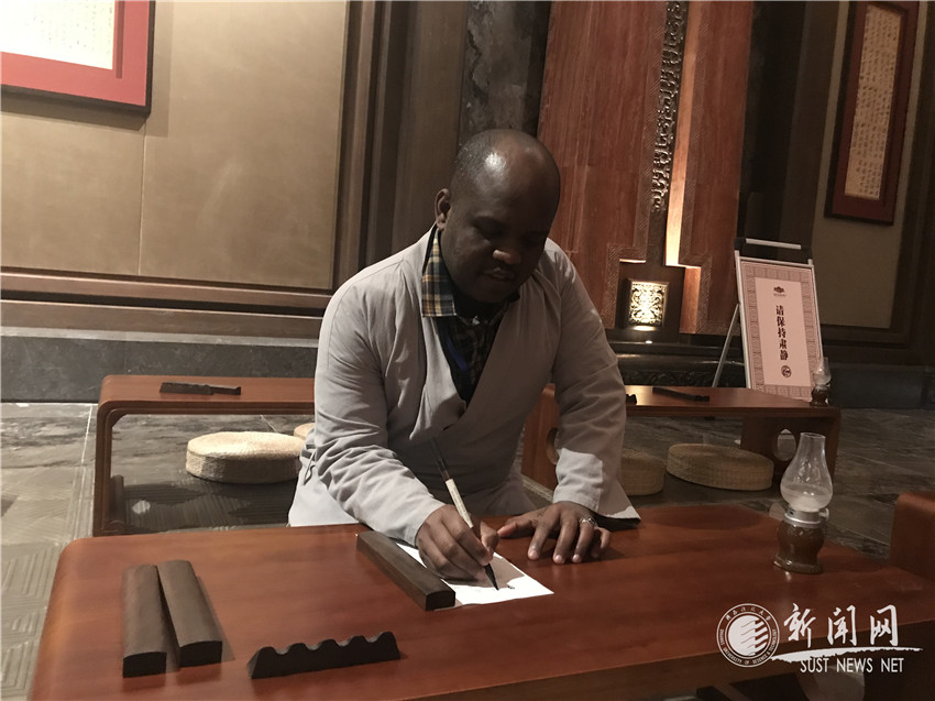 根據(jù)中國(guó)文化“走出去”戰(zhàn)略,漢中文化和旅游融合發(fā)展論壇服務(wù)高校留學(xué)生漢語(yǔ)教學(xué)、面向在中國(guó)學(xué)習(xí)的外國(guó)留學(xué)生、海外漢語(yǔ)學(xué)習(xí)群體,為他們提供學(xué)習(xí)漢語(yǔ)、感受漢文化、了解中國(guó)社會(huì)的實(shí)踐教學(xué)活動(dòng)。活動(dòng)期間留學(xué)生穿上漢服,學(xué)習(xí)漢禮,嘗試用毛筆寫字。舉手投足間,一位位“漢代人”以塌為席,盤腿入座,好似穿越了時(shí)空。