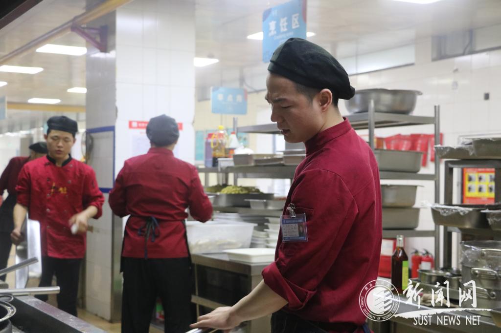 天還沒有全亮,大多數(shù)學(xué)生沉浸在夢鄉(xiāng),餐廳卻早已燈火通明。為了讓學(xué)生們吃上熱氣騰騰的飯菜、擁有良好的用餐環(huán)境,六點(diǎn)多的后廚已是一片忙碌,食堂的工作人員正精心的準(zhǔn)備著一天的早餐。工作人員告訴做餐飲最重要的就是保持原材料的新鮮和口感,不斷的更新菜品,讓學(xué)生們吃到滿意的飯菜。雖然日復(fù)一日的重復(fù)性工作會有些繁瑣,但他們每天都做的無比認(rèn)真。炊事員劉洋雖然年輕,卻已經(jīng)在沁園餐廳工作了兩年,他一邊忙著炸制早餐用的食物,一邊笑著說“不累,我們早已經(jīng)習(xí)慣了”,這聲簡簡單單的“習(xí)慣了”,背后卻是汗流浹背的堅(jiān)持,是高溫為了保證學(xué)生吃的健康的責(zé)任感。劉洋是外地人,他一學(xué)期才能回家一次。盡管長期不能與家人見面,只能與家人視頻通話,但這并不影響他的工作狀態(tài)。每次做菜的時(shí)候,他都會想這是為自己的親人做的一餐,一定要做好。