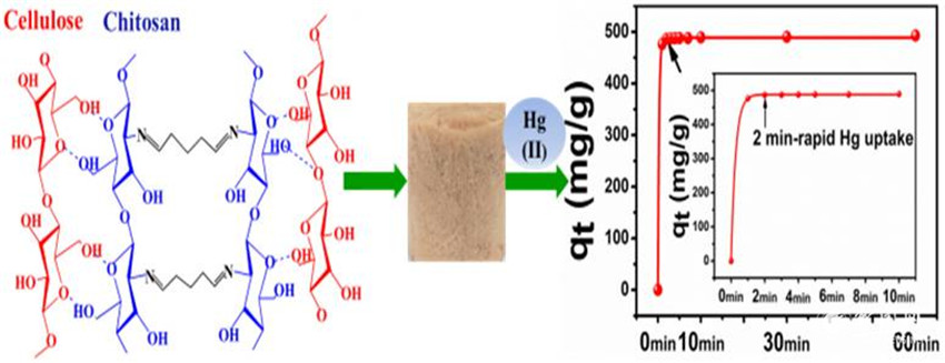 殼聚糖-纖維素復(fù)合泡沫對溶液中Hg(II)的吸附示意圖