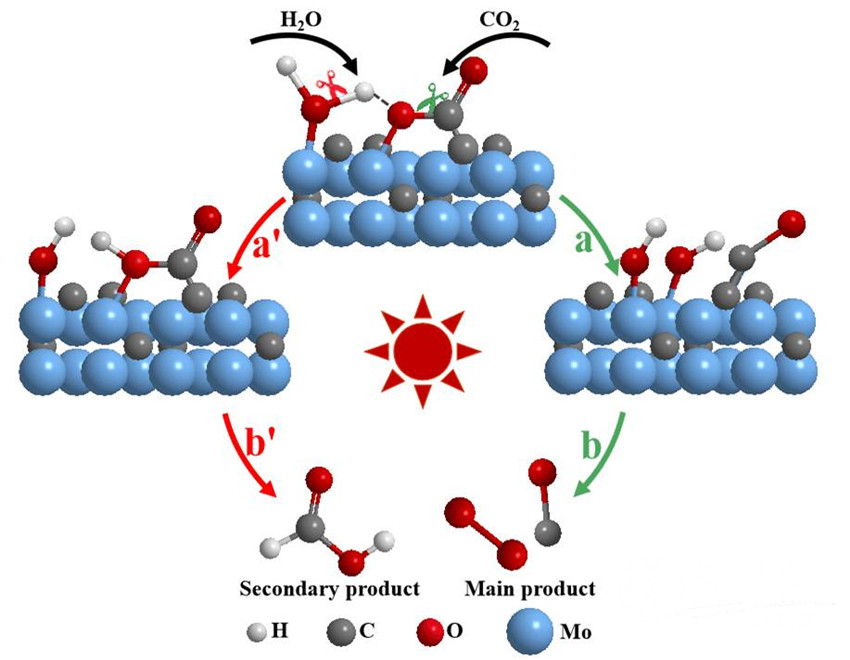 b-Mo2C光驅(qū)動(dòng)催化CO2轉(zhuǎn)化過程示意圖