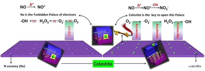 天青石納米顆粒影響氮化碳去除氮氧化物示意圖