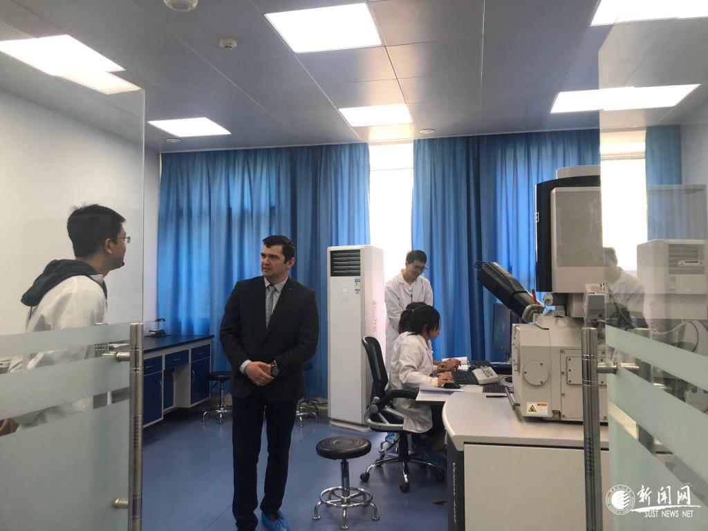 座談會后,希利科夫·伊利亞一行參觀了我?;W(xué)院現(xiàn)代儀器分析中心。希利科夫·伊利亞對該中心的工作環(huán)境、設(shè)備儀器等給予了高度評價,熱切希望兩校能夠充分利用所擁有的人才資源及先進(jìn)的硬件條件等資源,協(xié)同科研,共同取得更豐碩的科研成果。