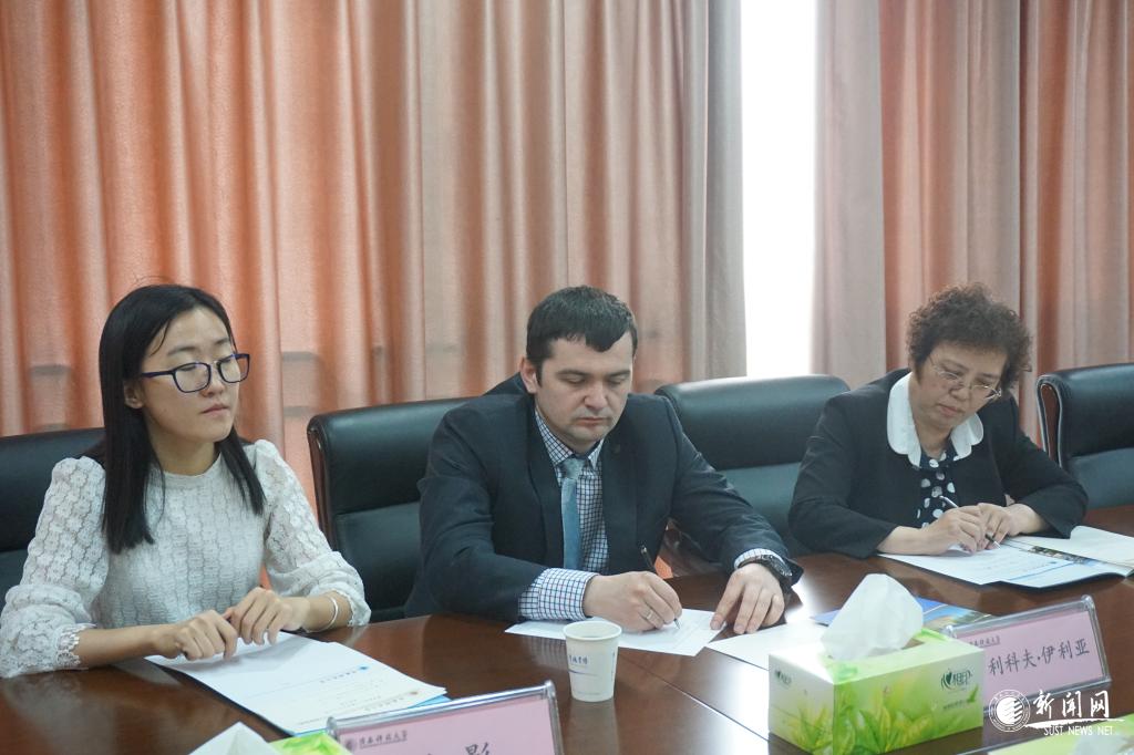 副校長王海燕熱情歡迎希利科夫·伊利亞一行的來訪并代表學(xué)校贈送紀(jì)念品