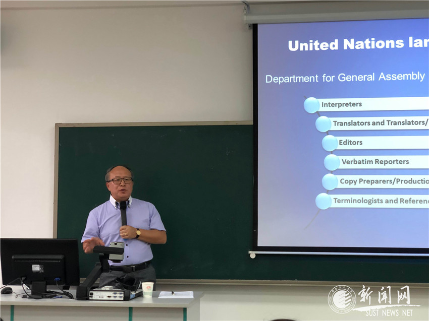 李正仁教授首先介紹了聯(lián)合國語言類工作人員的類別、崗位要求、崗位職責(zé)以及翻譯人員應(yīng)該具備的基本職業(yè)道德。隨后,就翻譯能力提升問題,李教授列舉了真實具體的翻譯案例,通過對比不同版本的譯文,李教授強調(diào)了準確用詞的重要性,指出合格譯員應(yīng)具備辨別詞語間細微差別的能力。無論是英譯中,還是中譯英,譯員都要在理解原語的前提下,結(jié)合具體語境,準確地傳達原語信息及立場。此外,李教授還分享了聯(lián)合國網(wǎng)站的翻譯培訓(xùn)材料,申請聯(lián)合國實習(xí)崗位的渠道等信息,鼓勵大家申請聯(lián)合國實習(xí)項目,體驗國際組織的工作環(huán)境,培養(yǎng)國際視野,充實人生經(jīng)歷。