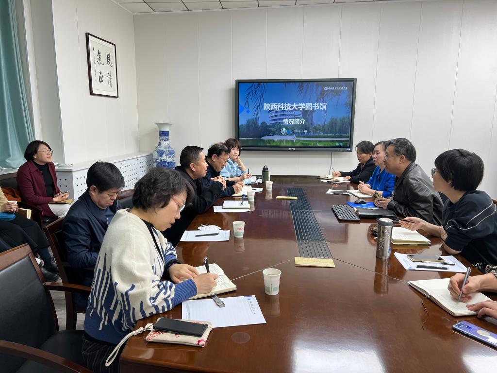 3月7日下午,西安工業(yè)大學(xué)圖書館館長(zhǎng)鐘定國一行9人到我校圖書館,就智慧圖書館、學(xué)科服務(wù)、讀者服務(wù)相關(guān)工作開展了調(diào)研交流,圖書館館長(zhǎng)王海剛、副館長(zhǎng)趙小羽、各部主任參加了座談。