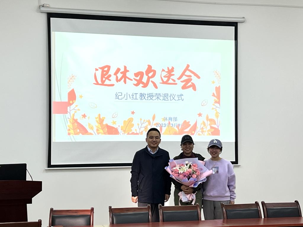 3月9日,體育部召開教職工大會(huì),為從教37年的紀(jì)小紅教授舉辦榮休儀式,體育部直屬黨支部書記祁懷遠(yuǎn)主持儀式。