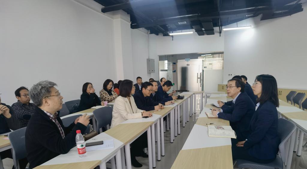 會后,袁曉軍一行參觀了位于研究生二號樓的集成電路與應(yīng)用未來研究院實驗室,并與校內(nèi)導師就研究項目落實、合作指導方式等具體工作做了深入的交流討論。