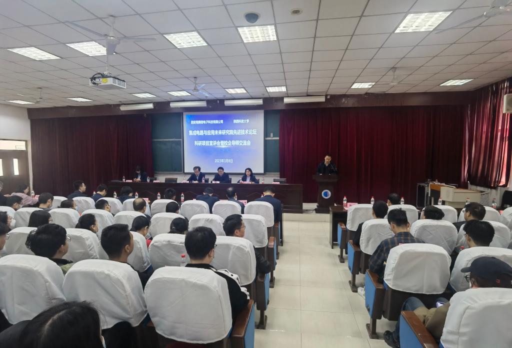 為進一步加強對外開放、擴大交流合作,深入落實我校追趕超越文件要求,切實提高校企聯(lián)合培養(yǎng)研究生質(zhì)量,3月8日上午,電子信息與人工智能學院與西安翔騰微電子科技有限公司在我校教三101教室,舉辦了“集成電路與應(yīng)用未來研究院先進技術(shù)論壇-科研項目宣講會暨校企導師交流會”。翔騰微電子副總經(jīng)理袁曉軍、高級工程師黎小玉、人力資源部主管周靜如等一行7人,電智學院黨委書記呂文華、院長馬令坤、院長助理孫連山、院長助理任喜偉、智能創(chuàng)新工程中心主任李秦君、副主任王長浩以及研究院導師和研究生參加了此次論壇,會議由孫連山主持。