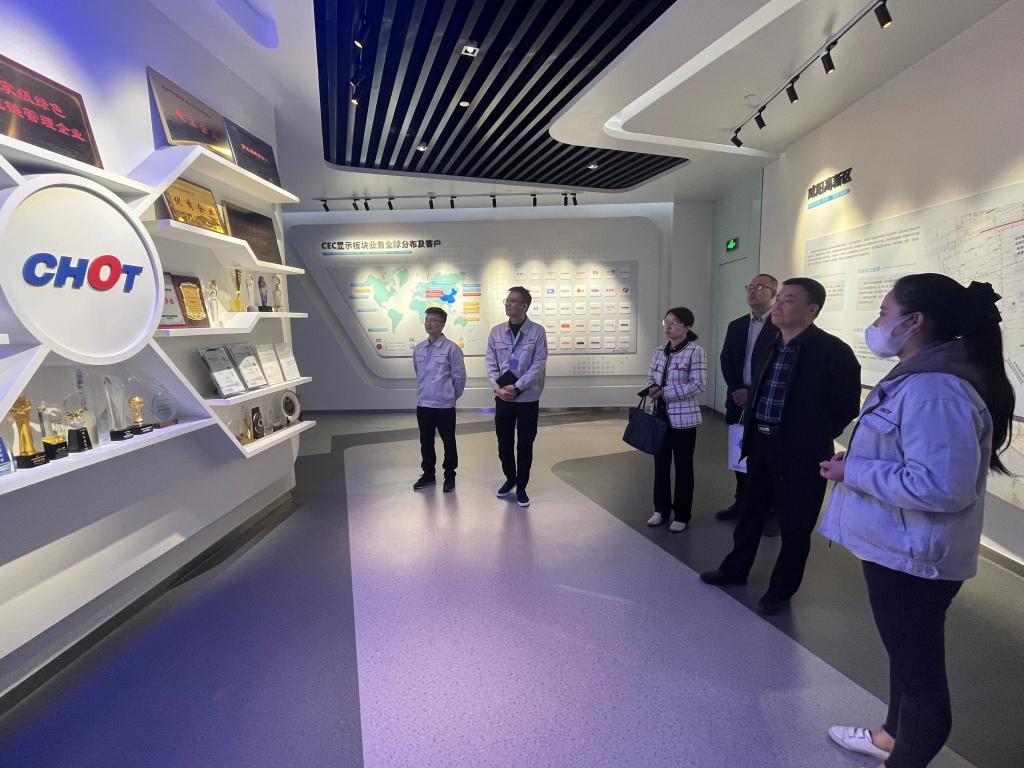 會前,賀濤一行參觀了咸陽彩虹光電科技有限公司文化長廊和生產(chǎn)車間。