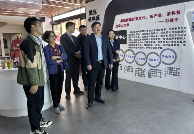 劉和林一行實(shí)地參觀調(diào)研了茯茶文化博覽館、茯茶文化創(chuàng)新中心展廳、茯茶生物創(chuàng)新實(shí)驗(yàn)室、高校文化創(chuàng)新技術(shù)轉(zhuǎn)化中心、京東科技直播基地等。