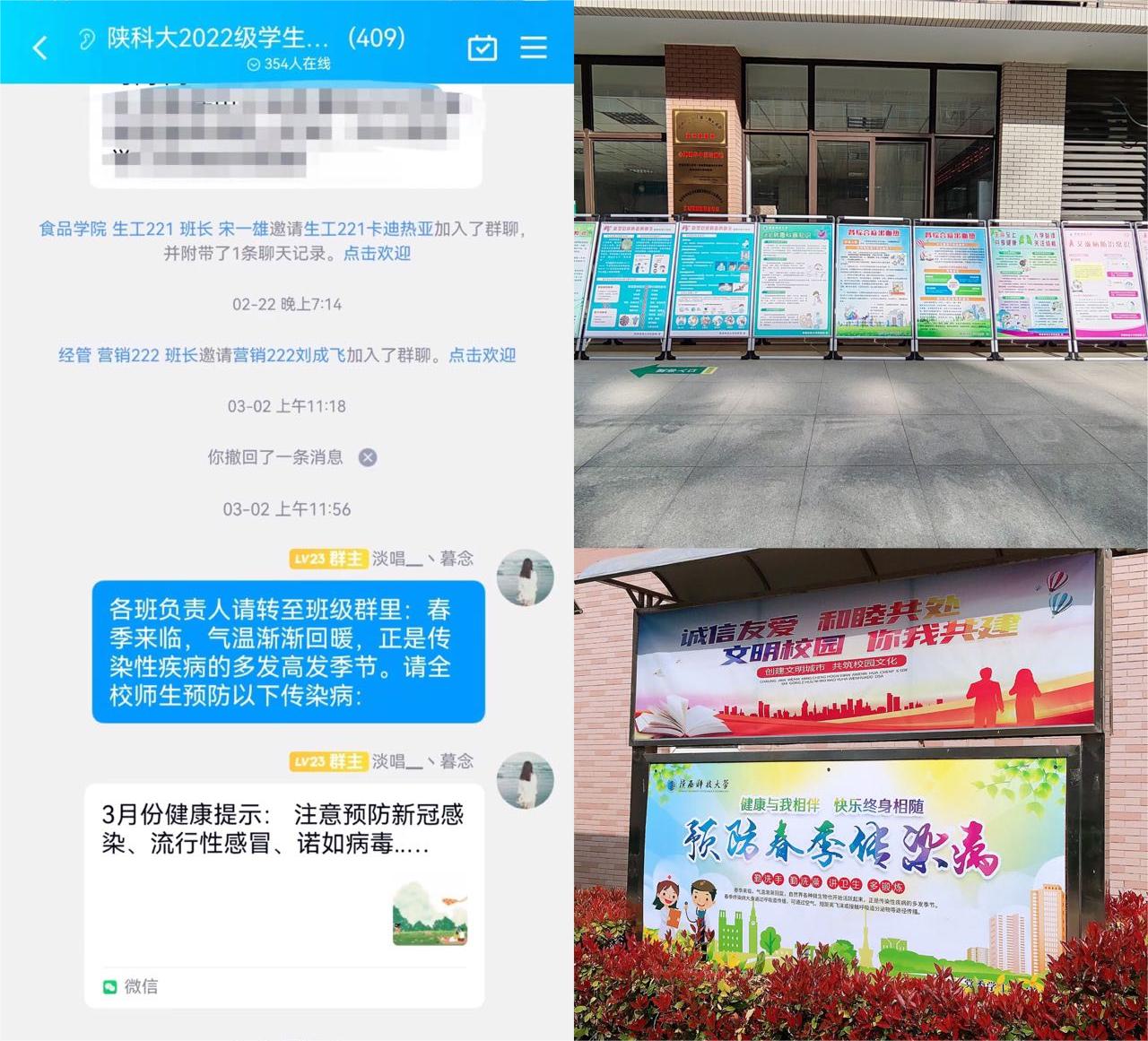 同時,校醫(yī)院利用線上線下各種宣傳渠道進(jìn)行春季常見傳染病如流感、諾如病毒、出血熱等疾病的相關(guān)宣傳教育活動,切實提高學(xué)生的自我防護(hù)意識和能力。線下張貼、設(shè)立各種疾病防治宣傳標(biāo)語、宣傳牌,線上采取由點及面、輻射傳播的方式,通過4個學(xué)生健康群對全校所有班級1400余名學(xué)生代表進(jìn)行傳染病防控知識宣傳教育,再由學(xué)生代表將相關(guān)知識點轉(zhuǎn)發(fā)到班級群,傳達(dá)給班級每一名同學(xué),以達(dá)到快速高效、詳細(xì)準(zhǔn)確的宣傳效果。