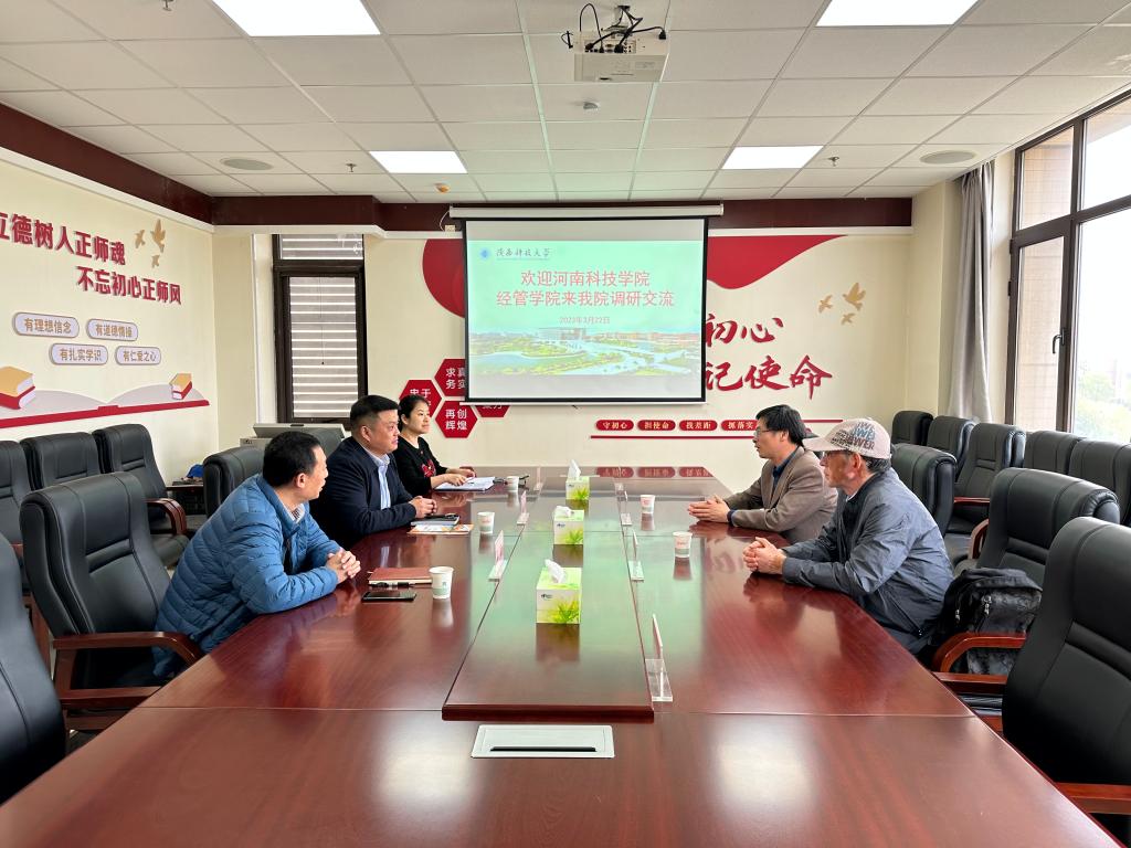 3月22日,河南科技學(xué)院經(jīng)濟(jì)學(xué)院黨委書記何二毛、副院長(zhǎng)郎群秀蒞臨我校經(jīng)濟(jì)與管理學(xué)院調(diào)研交流。經(jīng)管學(xué)院黨委書記崔楠、副院長(zhǎng)薛儉、教師石乘齊與來訪嘉賓進(jìn)行座談交流。