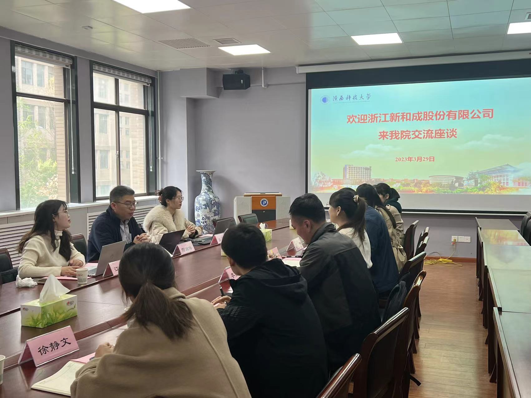 3月29日,浙江新和成股份有限公司董事會(huì)辦公室副主任何帥偉,董事會(huì)辦公室投資經(jīng)理江夢(mèng)娟、副經(jīng)理彭丹柳一行到食品科學(xué)與工程學(xué)院(生物與醫(yī)藥學(xué)院)洽談合作。食品學(xué)院黨委副書(shū)記孫敏、院長(zhǎng)助理高翔、相關(guān)教師代表參加座談會(huì)。會(huì)議由孫敏主持。