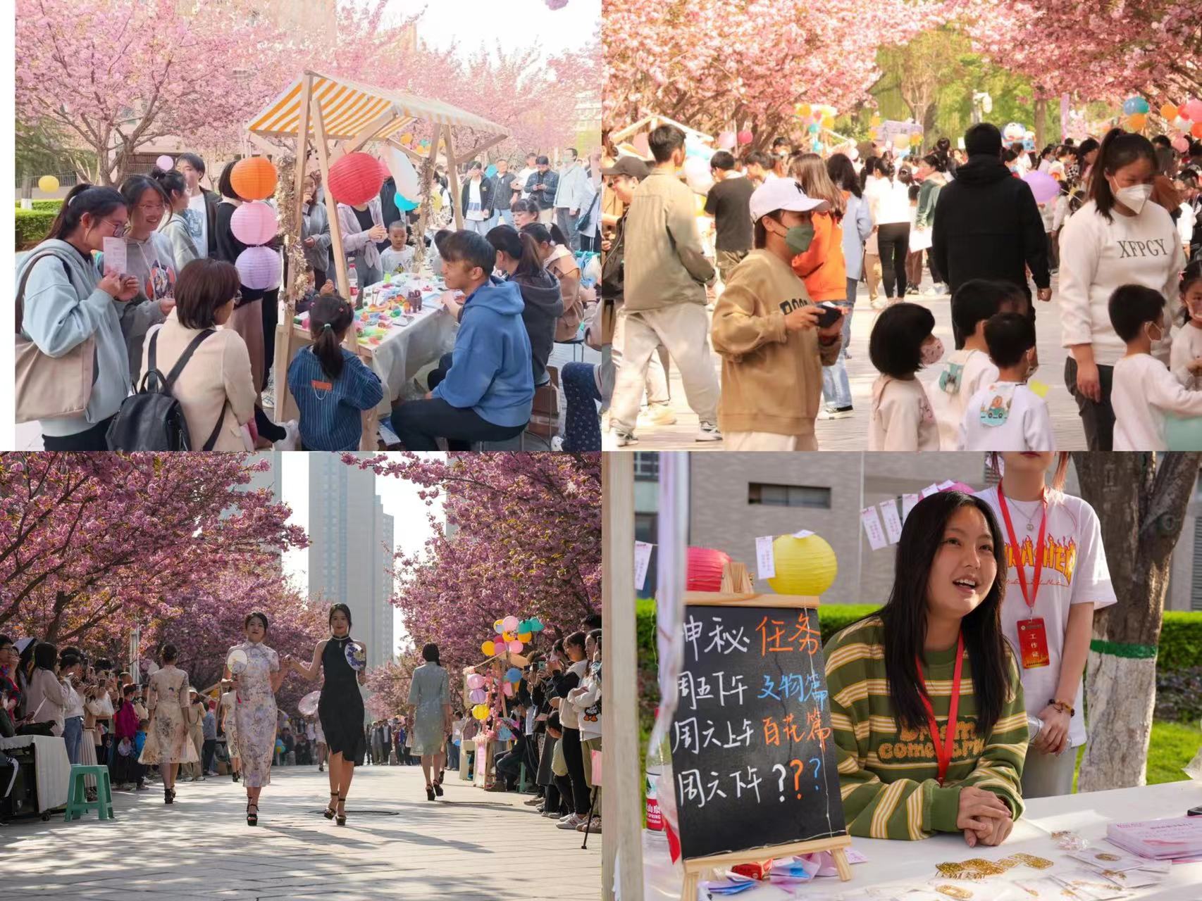 活動開幕式將民樂合奏《茉莉花》、古風(fēng)舞蹈《小城謠》、歌曲串燒《青花瓷》等傳統(tǒng)舞臺上的歌曲、舞蹈節(jié)目,搬至校園櫻花大道上,櫻花樹下的旗袍走秀更是將活動推向高潮,將大學(xué)生積極向上的心態(tài)在自然之美下表現(xiàn)的淋漓盡致,在視覺上給師生帶來春的跳動。