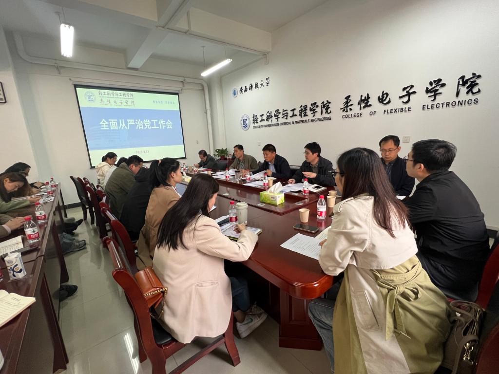 3月31日,輕工科學與工程學院(柔性電子學院)黨委在學院1B-218會議室召開全面從嚴治黨及安全穩(wěn)定工作會,學院黨政班子成員、黨委委員、紀委委員、全體黨支部書記參加會議。會議由學院黨委書記李新平主持。