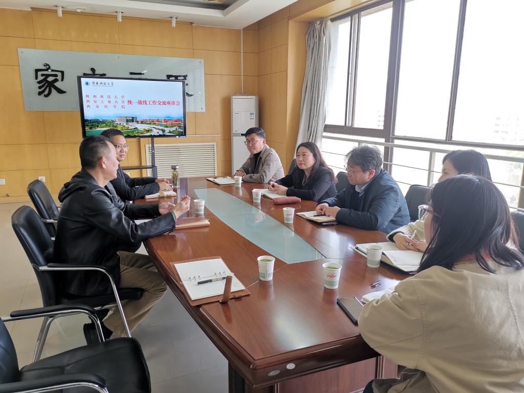 為進(jìn)一步強(qiáng)化未央各高校間統(tǒng)戰(zhàn)工作交流與合作,提升新時(shí)代高校統(tǒng)戰(zhàn)工作水平,4月6日,西安工業(yè)大學(xué)黨委委員、統(tǒng)戰(zhàn)部長雷曉青,西安醫(yī)學(xué)院黨委委員、統(tǒng)戰(zhàn)部長吳戈一行來校開展交流座談,三校統(tǒng)戰(zhàn)部全體人員參加座談,會議由我校黨委委員、統(tǒng)戰(zhàn)部長陳援主持。