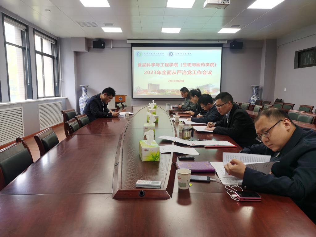 為深入學(xué)習(xí)宣傳貫徹黨的二十大精神,持之以恒推進(jìn)全面從嚴(yán)治黨向縱深發(fā)展,近日,食品科學(xué)與工程學(xué)院(生物與醫(yī)藥學(xué)院)召開(kāi)2023年全面從嚴(yán)治黨工作會(huì)議。學(xué)院黨政班子成員、黨委委員、黨政辦公室主任和黨委組織員參加會(huì)議。會(huì)議由學(xué)院黨委副書記、副院長(zhǎng)(主持工作)李國(guó)梁主持。