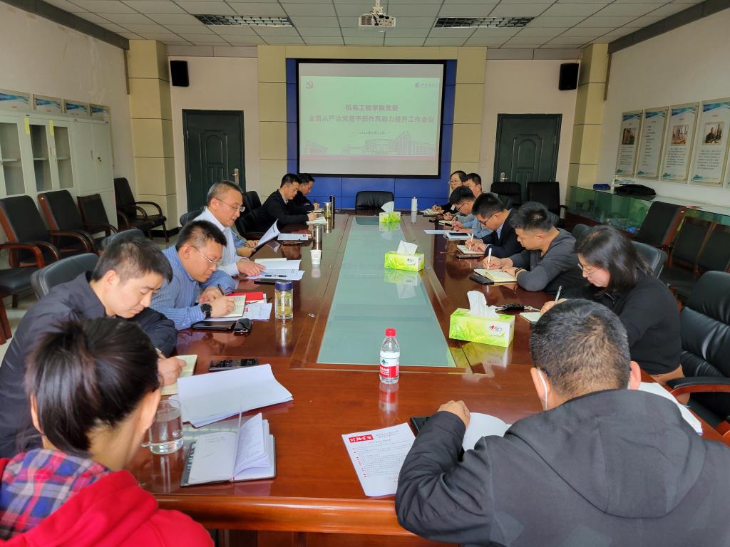 4月12日,機電工程學(xué)院黨委召開全面從嚴(yán)治黨暨干部作風(fēng)能力提升工作會議。學(xué)院黨委委員、班子成員、黨支部書記、黨政辦主任、組織員參會,會議由學(xué)院黨委書記夏祥林主持。