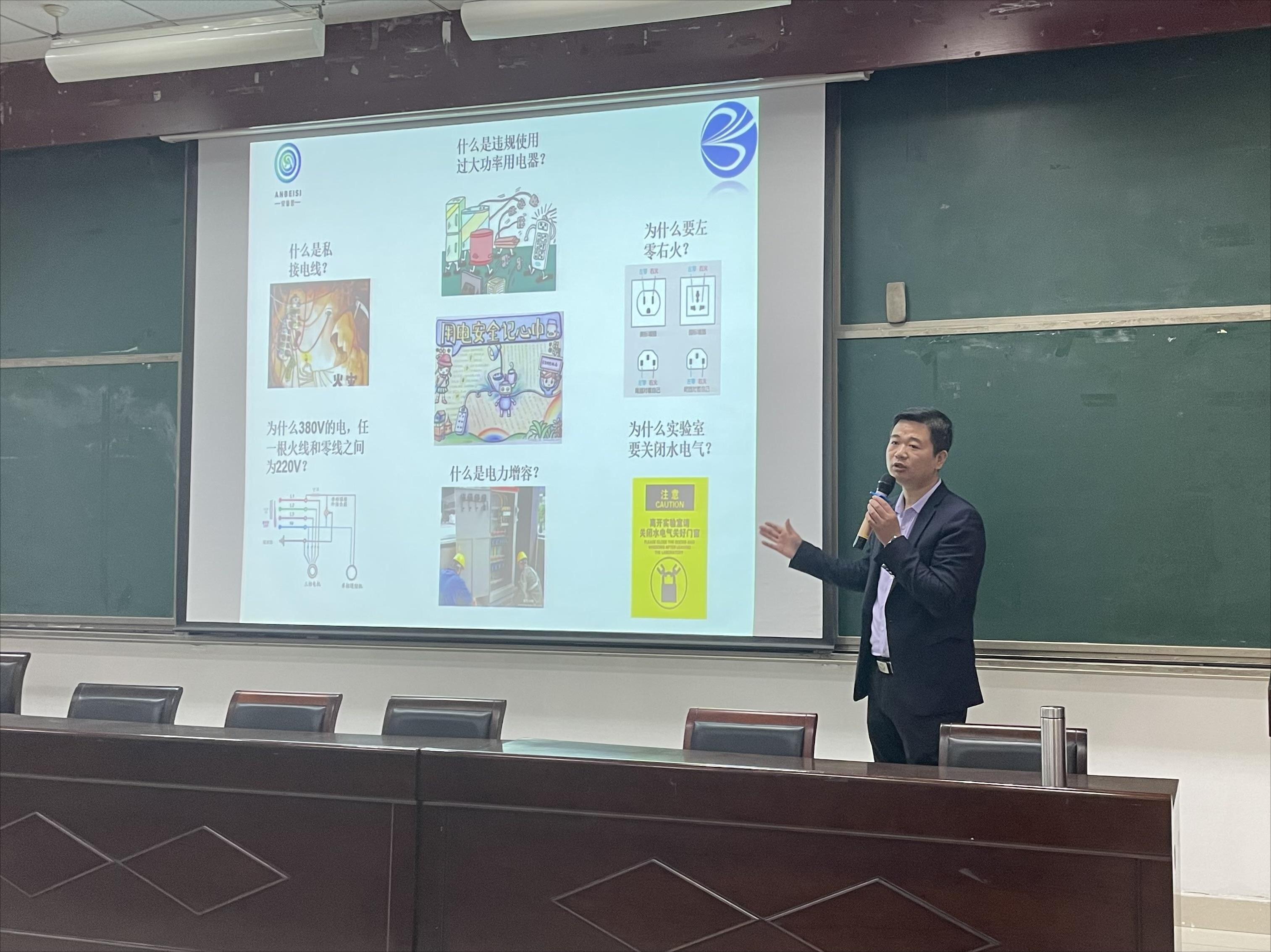 劉濤從實驗室安全的重要性、實驗室安全管理和安全培訓的必要性等方面進行了介紹,并分別從實驗室用電安全、用氣安全、?;返墓芾砗褪褂?、實驗室操作規(guī)范以及如何防火、處理應急突發(fā)事件、逃生等方面進行了深入淺出地講解。會后,參會師生就實驗室安全相關問題與劉濤進行了深入交流。