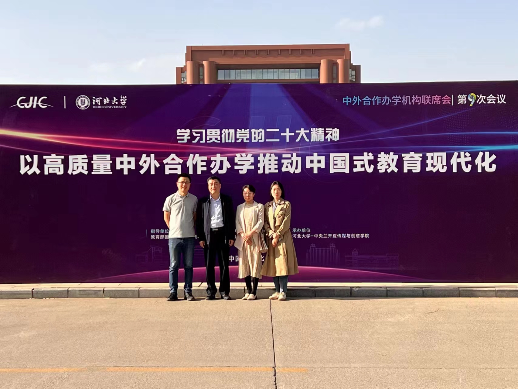 4月26日至27日,中外合作辦學(xué)機構(gòu)聯(lián)席會第九次會議在河北保定召開。本次會議以“學(xué)習(xí)貫徹黨的二十大精神,以高質(zhì)量中外合作辦學(xué)推動中國式教育現(xiàn)代化”為主題,由教育部國際合作與交流司指導(dǎo),中外合作辦學(xué)機構(gòu)聯(lián)席會主辦,河北大學(xué)-中央蘭開夏傳媒與創(chuàng)意學(xué)院承辦。教育部國際司一級巡視員陶洪建、河北省教育廳二級巡視員侯建國蒞臨指導(dǎo),來自全國150余家中外合作辦學(xué)單位的360余位相關(guān)人員參加了會議,我校阿爾斯特學(xué)院黨委書記賀濤、院長助理魏倩茹等參加會議。