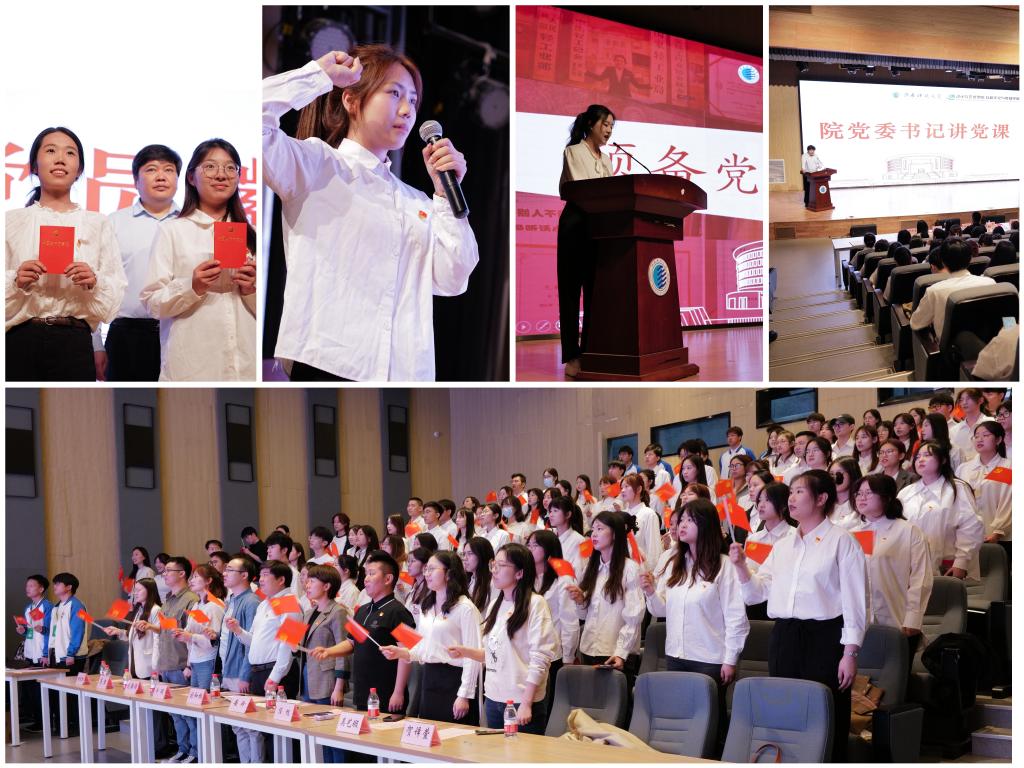 入黨宣誓儀式在共同奏唱《國際歌》后正式開始。安玲宣讀了學(xué)院黨委關(guān)于同意接收預(yù)備黨員的批復(fù)文件。學(xué)院黨委委員及各黨支部書記為預(yù)備黨員佩戴黨徽并發(fā)放《中國共產(chǎn)黨章程》。隨后全體黨員面向黨旗,莊嚴(yán)宣誓。新發(fā)展黨員周鑫代表全體預(yù)備黨員表態(tài)發(fā)言。
