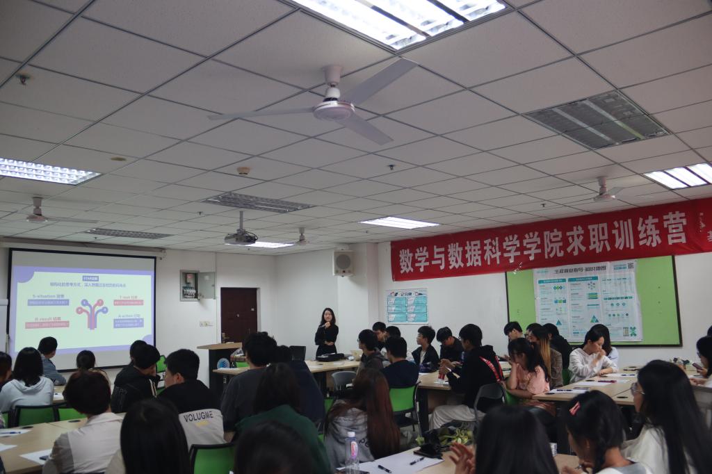 為提高2024屆畢業(yè)生求職能力,促進(jìn)學(xué)生充分、高質(zhì)量就業(yè),5月23日,數(shù)學(xué)與數(shù)據(jù)科學(xué)學(xué)院舉辦了第二屆求職訓(xùn)練營(yíng)。學(xué)院特邀西安紐扣軟件科技有限公司企業(yè)大學(xué)負(fù)責(zé)人高杰、招聘負(fù)責(zé)人燕羽開(kāi)展求職技能培訓(xùn),數(shù)學(xué)學(xué)院院長(zhǎng)助理宋沛、輔導(dǎo)員王蒙及2024屆求職學(xué)生參加了此次訓(xùn)練營(yíng)。