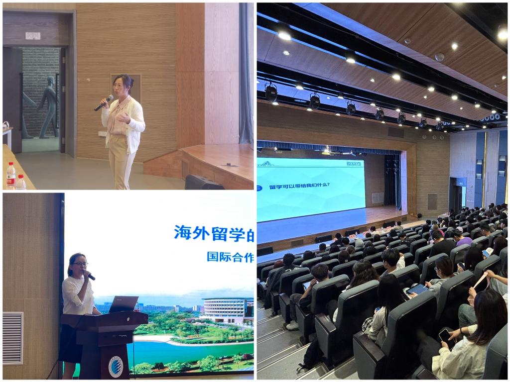 為營造良好學(xué)風(fēng),引導(dǎo)學(xué)生主動(dòng)拓寬國際視野、參與國際交流學(xué)習(xí),5月24日,設(shè)計(jì)與藝術(shù)學(xué)院(絲路文化與傳播學(xué)院)在人文樓小劇場舉辦“出國留學(xué)早知道”專題報(bào)告會(huì)。會(huì)議邀請(qǐng)了學(xué)校國際合作與交流處副處長劉雨凡,留學(xué)服務(wù)科同斯佳,阿爾斯特學(xué)院輔導(dǎo)員郭樞漾三位老師分專題做報(bào)告。報(bào)告會(huì)分兩個(gè)階段進(jìn)行。