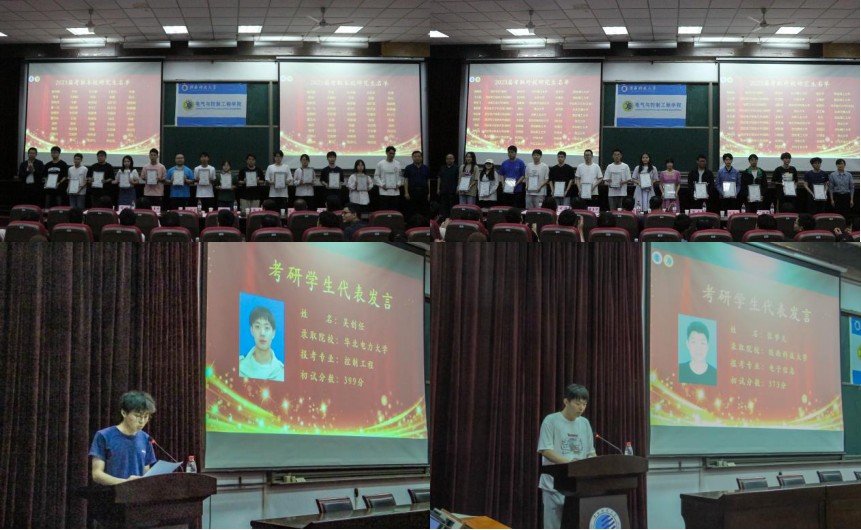 會議第一階段對2023屆升學(xué)學(xué)生和優(yōu)秀宿舍進行表彰。院長助理楊南宣讀了《關(guān)于表彰2023屆優(yōu)秀考研畢業(yè)生的決定》,張凱凱、學(xué)院班子和各系部主任為2023屆升學(xué)學(xué)生和優(yōu)秀宿舍頒獎。2019級考研優(yōu)秀學(xué)生代表吳創(chuàng)任、張夢凡分享了考研經(jīng)歷和學(xué)習(xí)經(jīng)驗,號召2024屆考研學(xué)生腳踏實地,志存高遠。