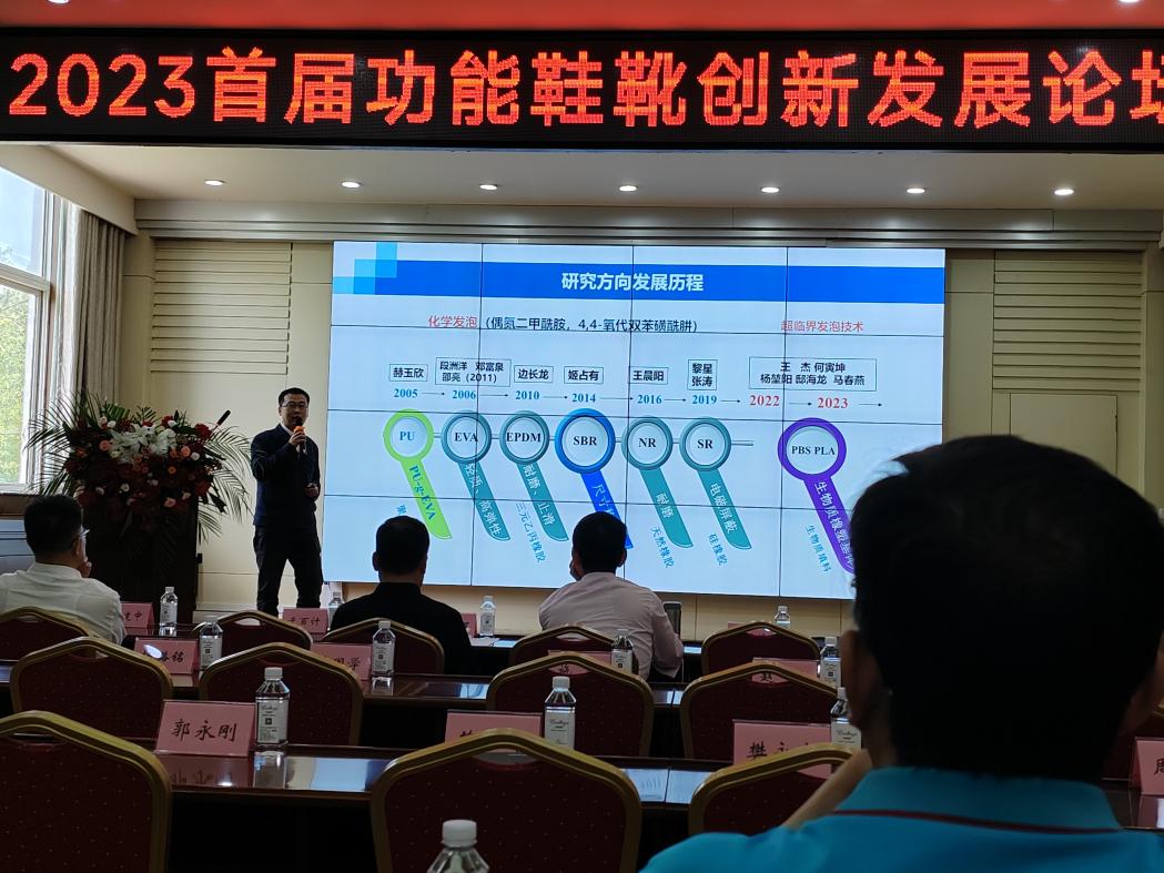 30日下午,邵亮教授受邀在2023首屆功能鞋靴創(chuàng)新發(fā)展論壇作了題為“聚合物基復(fù)合發(fā)泡材料的制備及在鞋材中的應(yīng)用研究”的報(bào)告,介紹了陜西科技大學(xué)科學(xué)新材料研究所近年來(lái)在橡膠基聚合物發(fā)泡材料方向的研究和應(yīng)用進(jìn)展,引起了與會(huì)專家學(xué)者的濃厚興趣。會(huì)議期間我校參會(huì)師生與際華三五一五皮革皮鞋有限公司相關(guān)負(fù)責(zé)人進(jìn)行了深入交流,就冷粘作訓(xùn)鞋中底達(dá)成合作意向,進(jìn)一步加深雙方之間的合作友誼。