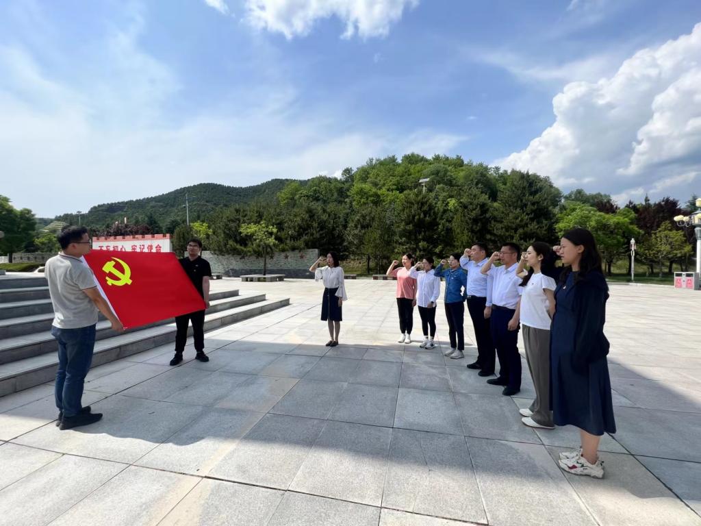 在馬欄革命紀(jì)念碑前,全體黨員面向黨旗宣誓,重溫入黨誓詞,向用熱血淬煉的革命精神致以最崇高的敬意。