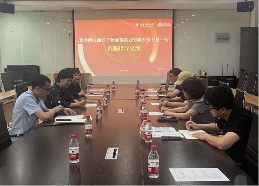6月20日上午,西安曲江千秋展覽策劃有限公司總經(jīng)理王勤、總經(jīng)理助理樊曉云、展覽總監(jiān)趙云龍一行來(lái)我校設(shè)計(jì)與藝術(shù)學(xué)院(絲路文化與傳播學(xué)院)調(diào)研交流。學(xué)院院長(zhǎng)劉宗明教授、工設(shè)專業(yè)胡志剛教授、環(huán)藝專業(yè)主任張偉迪副教授、服設(shè)專業(yè)陳曉潔博士參加會(huì)議。會(huì)議由副院長(zhǎng)賀雪梅主持。