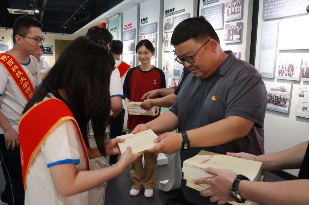 隨后李鵬、趙闖為志愿者們贈送了《論黨的青年工作》書籍,囑托同學們向書本學習,牢記習近平總書記關于青年工作的重要思想,在平凡的崗位上勇于擔當負責,積極主動作為,用忠誠奉獻的實際行動書寫新時代科大青年的責任擔當。