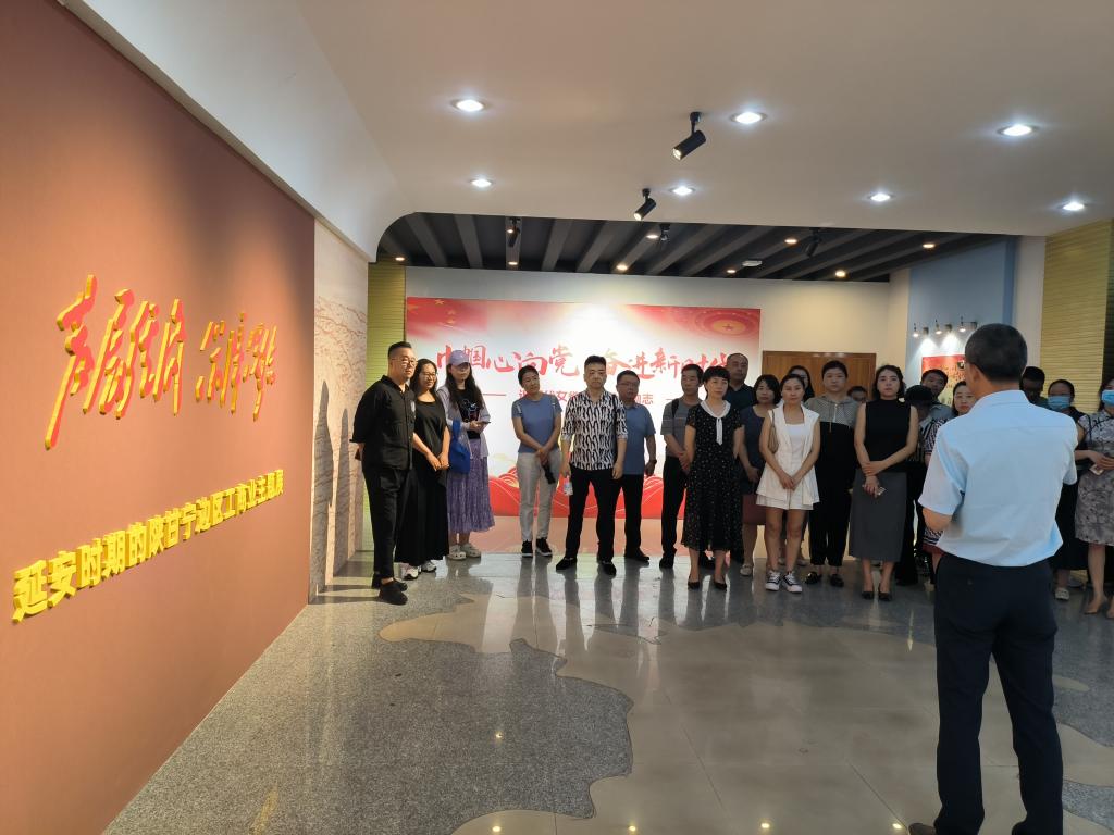 為深入開展學(xué)習(xí)貫徹習(xí)近平新時代中國特色社會主義思想主題教育,6月27日,設(shè)計與藝術(shù)學(xué)院(絲路文化與傳播學(xué)院)黨委組織全體教師黨員集中參觀學(xué)習(xí)了“發(fā)展經(jīng)濟(jì)保障供給——延安時期陜甘寧邊區(qū)工商業(yè)”主題展覽,博物館副館長薛力源進(jìn)行了講解。