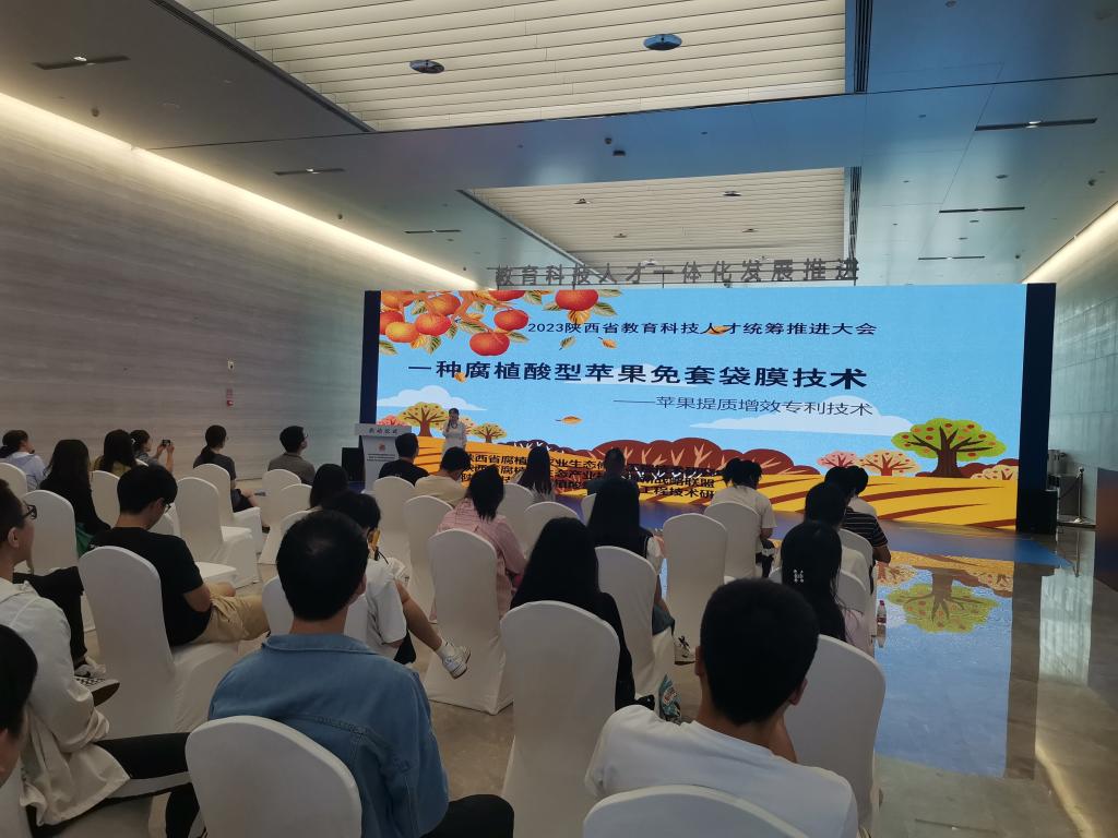 路演環(huán)節(jié),我校宋潔副教授就“一種腐殖酸型蘋果免套袋膜技術(shù)”進(jìn)行路演發(fā)布。多家企業(yè)和投資人對該技術(shù)表現(xiàn)出濃厚興趣并進(jìn)行了詳細(xì)的咨詢和交流。陜西高??萍汲晒构参齺碜哉纭W(xué)界、商界400余名代表齊聚一堂,共商教育、科技、人才融合發(fā)展。