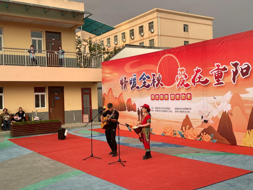 為深入學習貫徹習近平新時代中國特色社會主義思想和習近平文化思想,弘揚中華民族尊老敬老愛老助老的傳統(tǒng)美德,營造老少共融、親仁善鄰、和諧和睦的良好氛圍,在九月初九重陽節(jié)來臨之際,陜科大(咸陽)社區(qū)、陜西科技大學附中、老年大學陜科大分校共同開展“情暖金秋,愛在重陽”主題活動,咸陽校區(qū)管委會、離退處、陜科大附中相關負責人出席匯演活動。