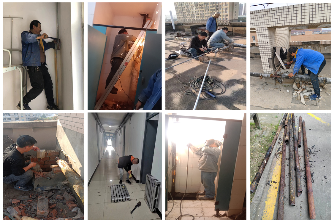 根據(jù)學校暖氣試水安排,學生公寓通過廣播、通知等方式將試水安排傳達到每間宿舍,確保學生知曉并留意暖氣試水是否正常。在試水過程中,針對工作人員發(fā)現(xiàn)和學生反饋的漏水情況,學生公寓組織維修人員加班加點,及時進行維修。試水期間,共維修漏水點13處,開挖暖氣坑道1處,焊接管道7處。