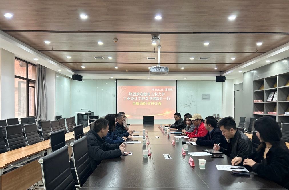 劉宗明對鄧衛(wèi)斌一行來訪表示熱烈歡迎,并介紹了設(shè)藝學(xué)院的歷史沿革、人才培養(yǎng)、學(xué)科建設(shè)和近年來發(fā)展情況,重點介紹了學(xué)院在碩士、博士生人才培養(yǎng)及服務(wù)社會方面的思路、舉措和成效。工業(yè)設(shè)計教研室主任江濤介紹學(xué)院工業(yè)設(shè)計專業(yè)的課程體系改革、建設(shè)成果、專業(yè)發(fā)展、學(xué)科前沿論壇和未來發(fā)展方向。鄧衛(wèi)斌對設(shè)藝學(xué)院近年來取得的學(xué)科建設(shè)成果給予高度評價,并介紹了湖北工業(yè)大學(xué)工業(yè)設(shè)計學(xué)院的基本情況、專業(yè)設(shè)置及學(xué)科建設(shè)情況。雙方就學(xué)科建設(shè)、核心課程建設(shè)、學(xué)位授權(quán)點評估等方面的主要做法和經(jīng)驗展開熱烈討論與交流。