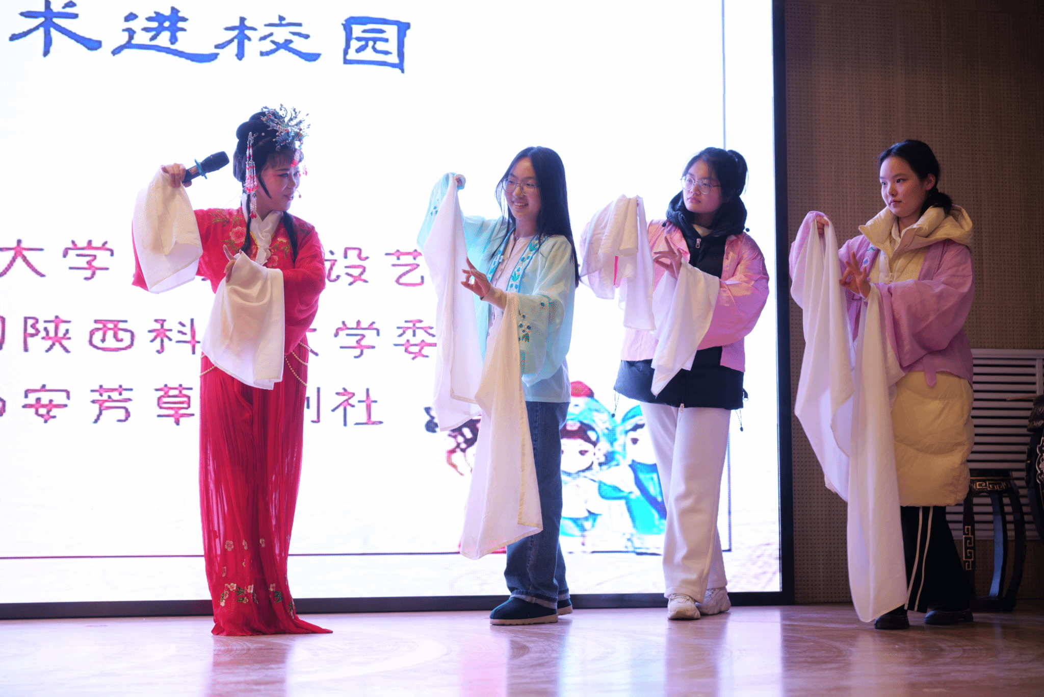 12月17日晚,由校團(tuán)委主辦的“越韻滿秦漢,經(jīng)典永流傳”越劇進(jìn)校園活動在設(shè)藝小劇場圓滿落下帷幕。百余名師生觀看了西安芳草越劇社帶來的精彩演出。