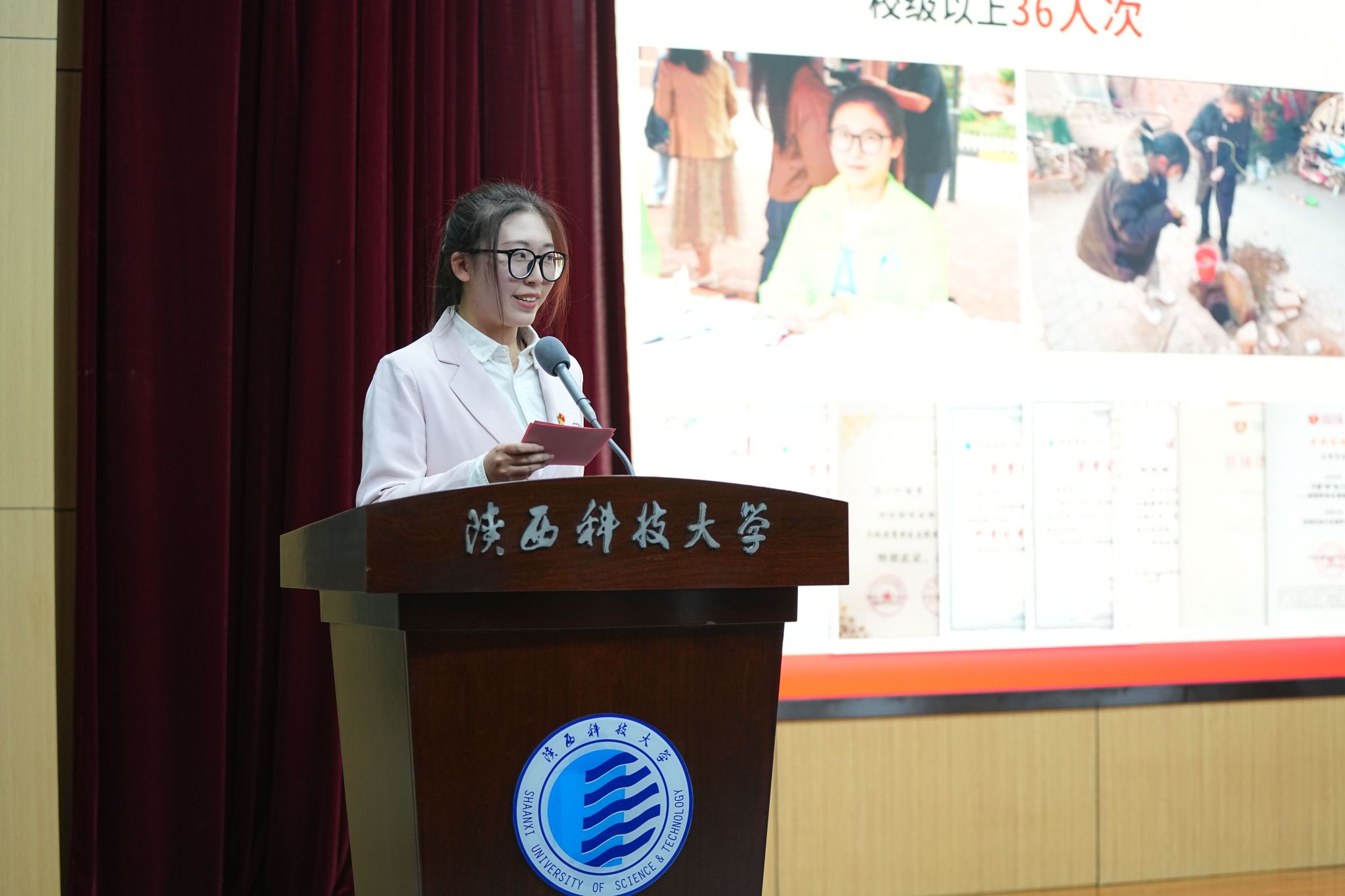 大會(huì)最后,校至誠(chéng)至博獎(jiǎng)學(xué)金獲得者、2020級(jí)學(xué)生陳益嘉,講述了她保研天津大學(xué)的奮斗歷程,分享了三年多以來(lái)在志愿服務(wù)、科技創(chuàng)新等方面精彩充實(shí)的大學(xué)生活,鼓勵(lì)同學(xué)們志存高遠(yuǎn),腳踏實(shí)地。