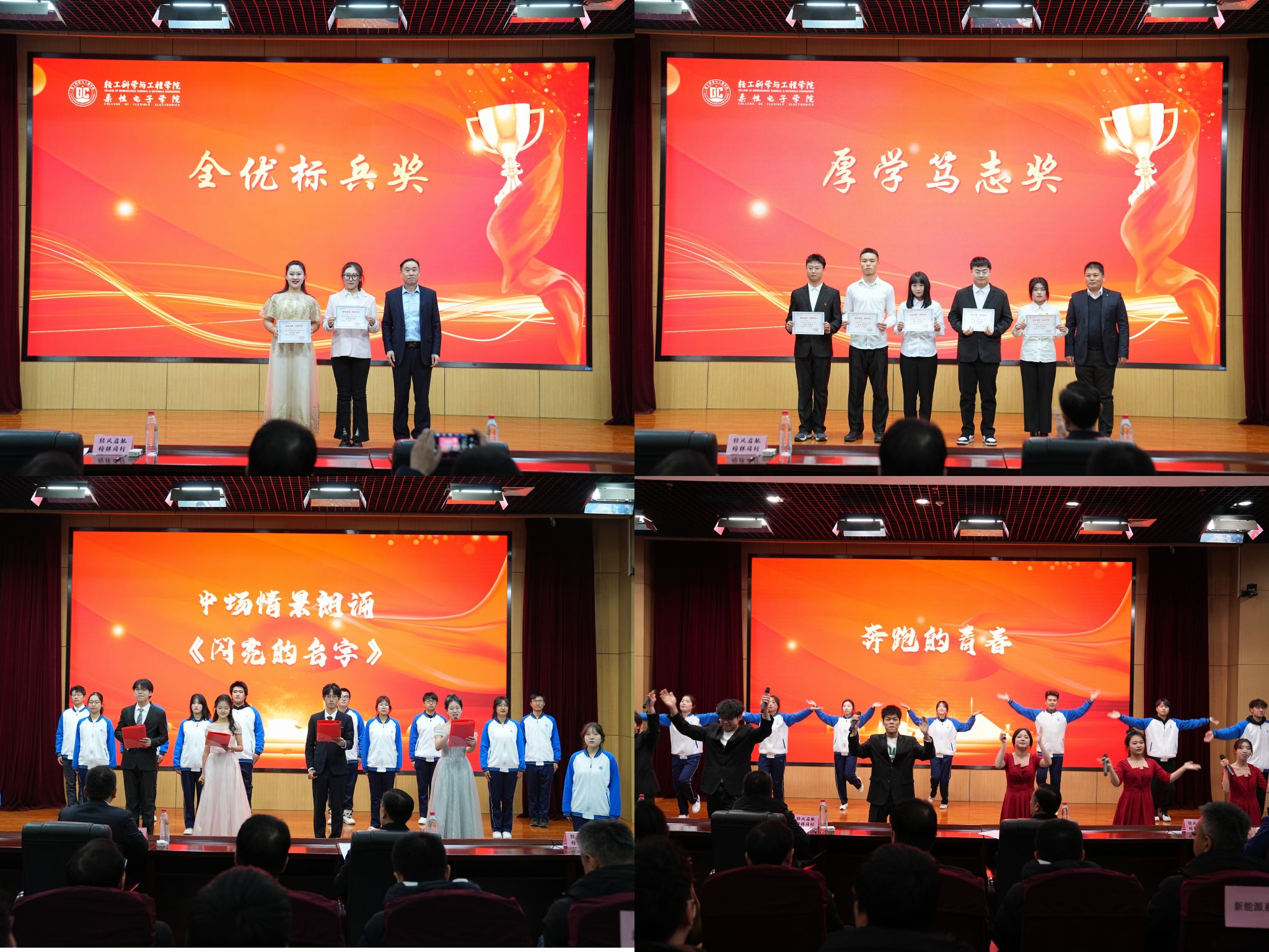 頒獎(jiǎng)環(huán)節(jié),全體師生觀看了2023年度優(yōu)秀宿舍、先進(jìn)班集體及單項(xiàng)獎(jiǎng)獲獎(jiǎng)學(xué)生的風(fēng)采展示短片,出席大會(huì)的領(lǐng)導(dǎo)和各系主任為受表彰的先進(jìn)集體和個(gè)人頒獎(jiǎng)。表彰大會(huì)期間,由輕工學(xué)子表演的歌伴舞《奔跑的青春》和朗誦《閃亮的名字》彰顯了學(xué)院學(xué)子積極向上,勇于拼搏的青春風(fēng)采。