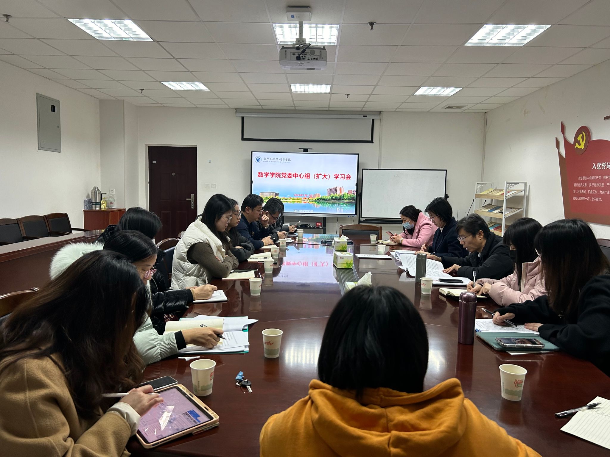 1月12日上午,數學與數據科學學院黨委在理科樓423會議室召開理論學習中心組(擴大)會議,傳達學習學校第三次黨代會精神。學院班子成員、全體黨支部書記、各系室負責人參加會議。會議由學院黨委書記郭改慧主持。