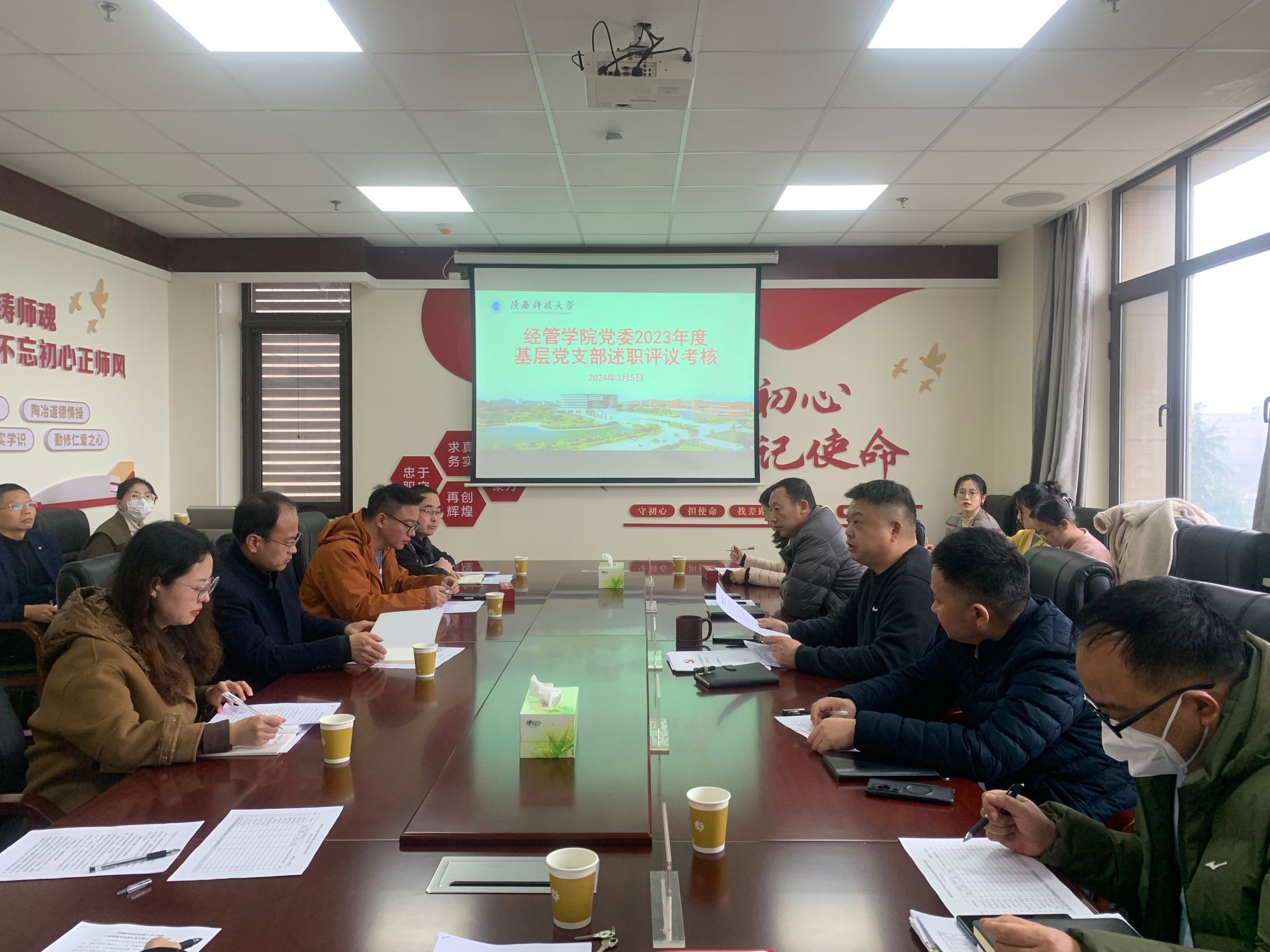 根據(jù)校黨委關于開展基層黨建述職評議考核的相關要求,經(jīng)濟與管理學院(亞歐貿(mào)易與數(shù)字經(jīng)濟學院)黨委于3月5日下午在人文樓A415召開2023年度基層黨支部述職評議考核會議。學院黨委委員和全體教工、學生黨支部書記參加會議,學院黨委書記崔楠主持會議并做點評。