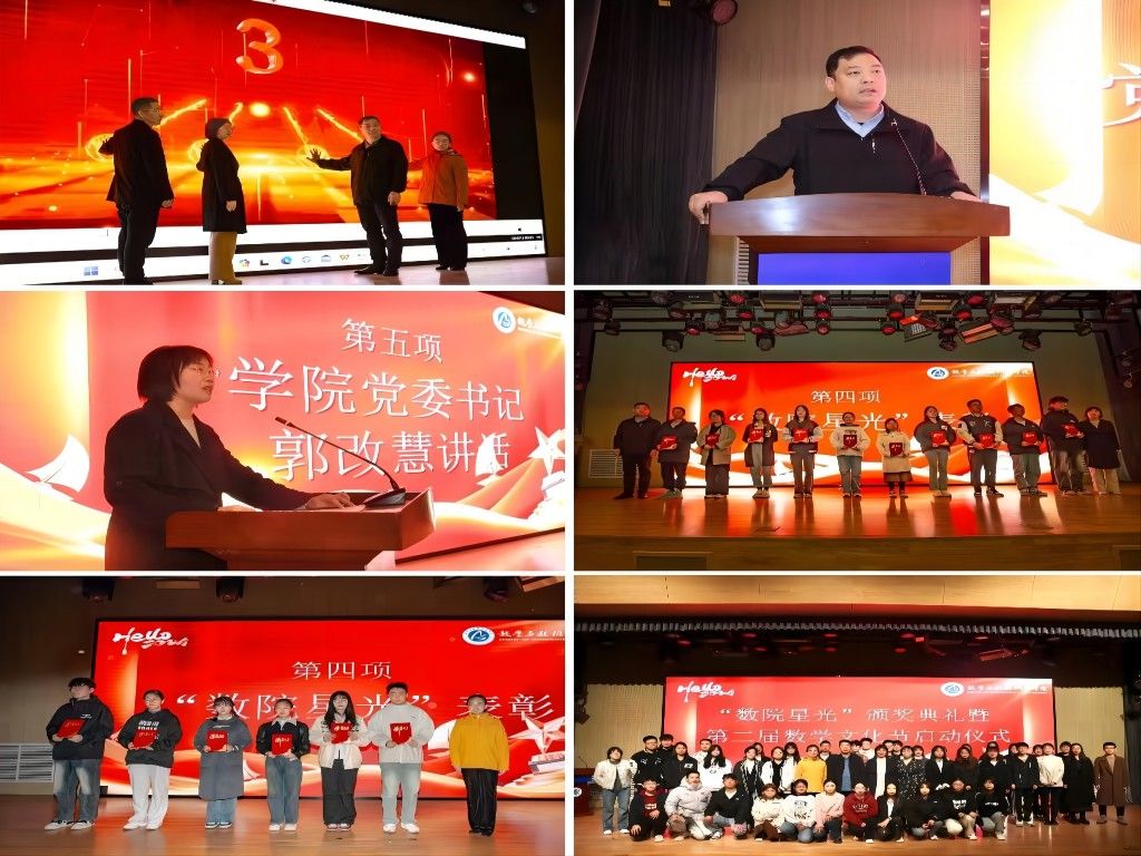 為弘揚(yáng)科學(xué)家精神、傳播數(shù)學(xué)科學(xué)文化,3月13日上午數(shù)學(xué)與數(shù)據(jù)科學(xué)學(xué)院在小劇場(chǎng)舉辦了第二屆數(shù)學(xué)文化節(jié)啟動(dòng)儀式暨“數(shù)院星光”頒獎(jiǎng)典禮。黨委學(xué)生工作部部長(zhǎng)張凱凱,數(shù)學(xué)學(xué)院黨委書記郭改慧、院長(zhǎng)李劍,校團(tuán)委副書記王雪婧,數(shù)學(xué)學(xué)院院長(zhǎng)助理、學(xué)生工作負(fù)責(zé)人宋沛,數(shù)學(xué)學(xué)院全體輔導(dǎo)員、師生代表到場(chǎng)參加?;顒?dòng)由宋沛主持。