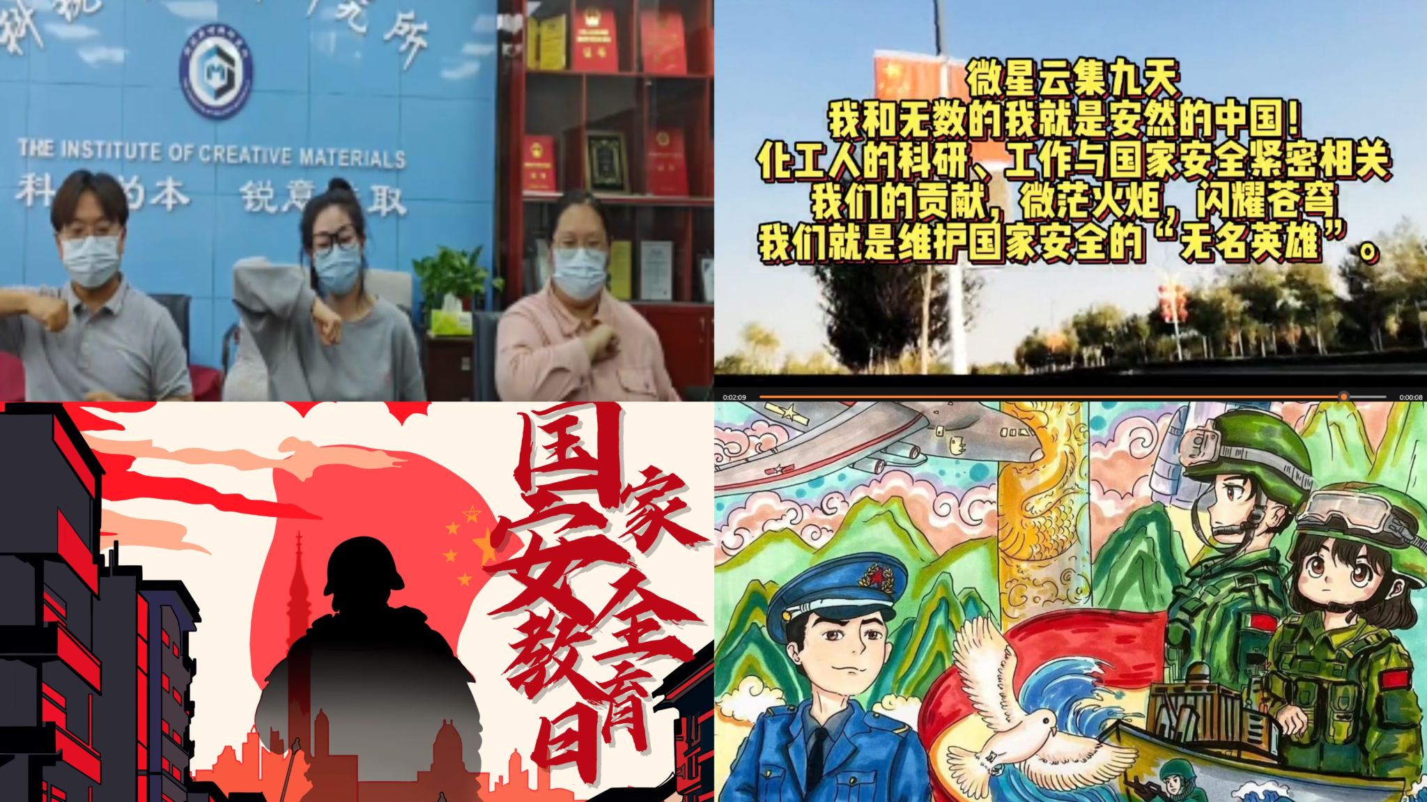 發(fā)揮研究生思想政治教育主動性,廣泛開展主題宣傳實踐,明確研究生維護國家安全中應承擔的責任和義務,提高研究生對于國家安全必要性和緊迫性的認識。一是打通校院宣傳渠道,廣泛開展以“兩微一端”為載體,以知識普及為核心,以視頻、動畫為主要形式的國家安全教育宣傳,營造校內學習關注國家安全教育的濃厚氛圍。二是發(fā)揮朋輩引領力,依托研究生宣講團,打造全民國家安全教育宣講微課,面向校內外開展線上線下宣講。宣講團赴西安交通大學就宣講團建設、國家安全教育主題宣講進行深度交流。三是開展主題教育海報、微動漫等原創(chuàng)作品征集。研究生通過凝練國家安全教育日主題活動學習成果,圍繞國家安全領域話題開展創(chuàng)作,充分展示研究生關于國家安全教育內容的認知與思考,形成了平面作品65件,視頻作品13件。