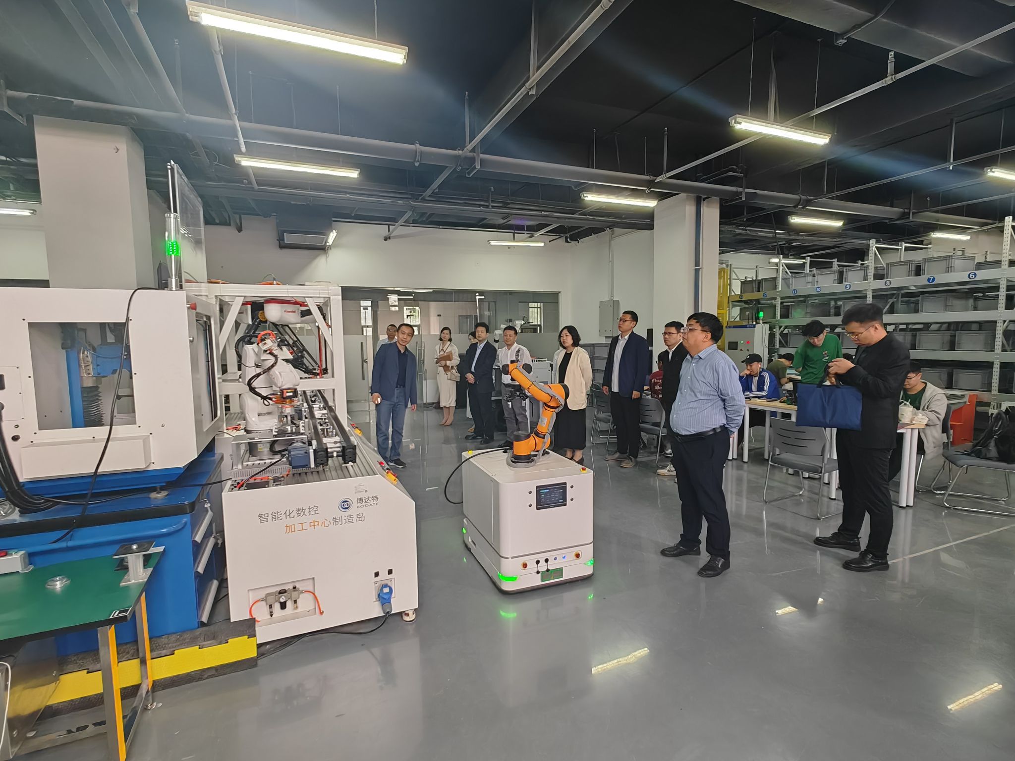4月24日,浐灞國際港招商與投資服務(wù)一局負責人張琳、主管賈育林,西安達升科技股份有限公司董事長趙江民回訪機電工程學(xué)院(智能制造與機器人工程學(xué)院),就產(chǎn)教融合、校地合作、科技成果轉(zhuǎn)化開展調(diào)研。機電學(xué)院黨委書記夏祥林、副院長楊立軍及教師代表等人參加活動。