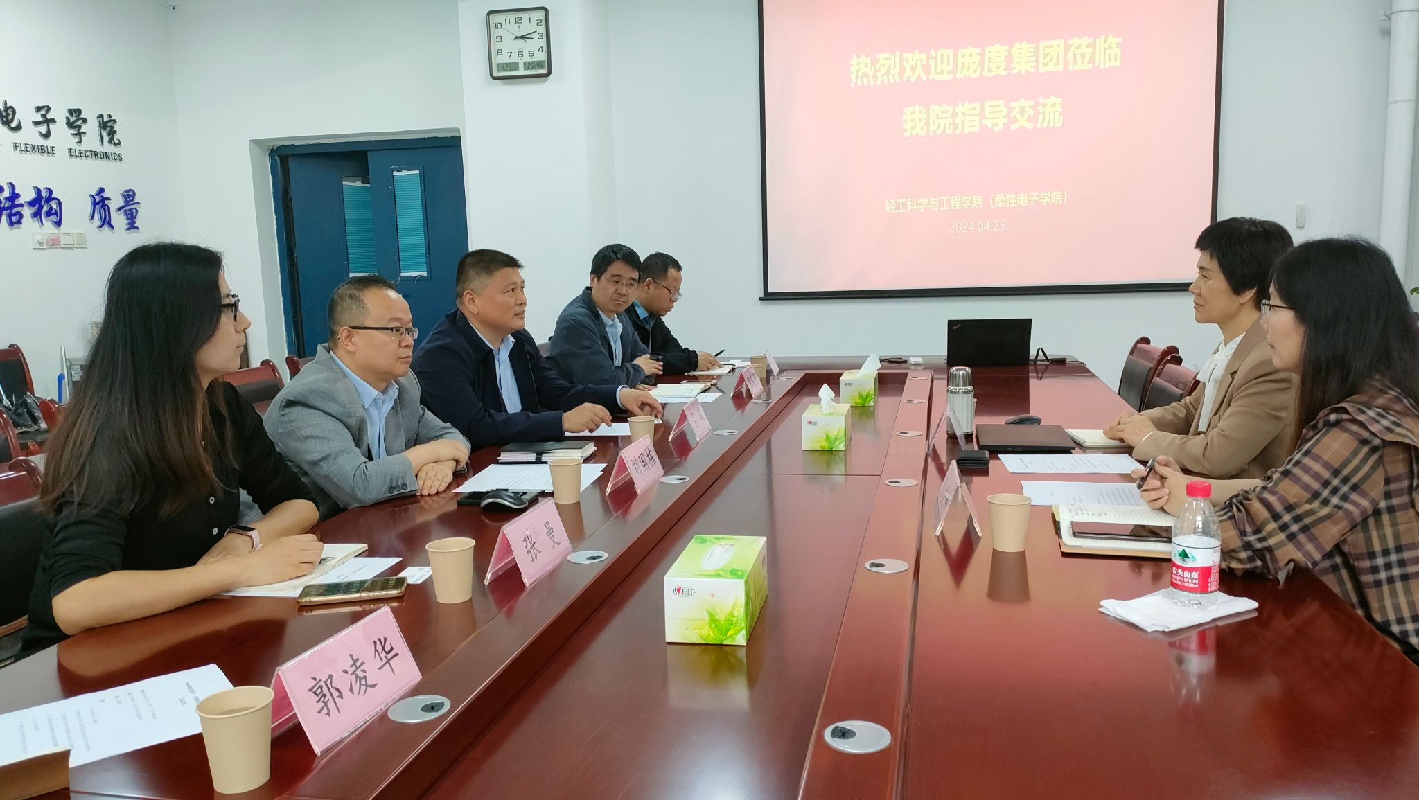 4月29日下午,龐度集團(tuán)副總裁郭曉慧、人力資源總監(jiān)陳樓娣等一行到輕工科學(xué)與工程學(xué)院(柔性電子學(xué)院)進(jìn)行交流。輕工學(xué)院院長呂斌、副院長劉國棟、黨委副書記張乾隆、新媒體技術(shù)系副主任及部分教師代表參加座談。會(huì)議由劉國棟主持。