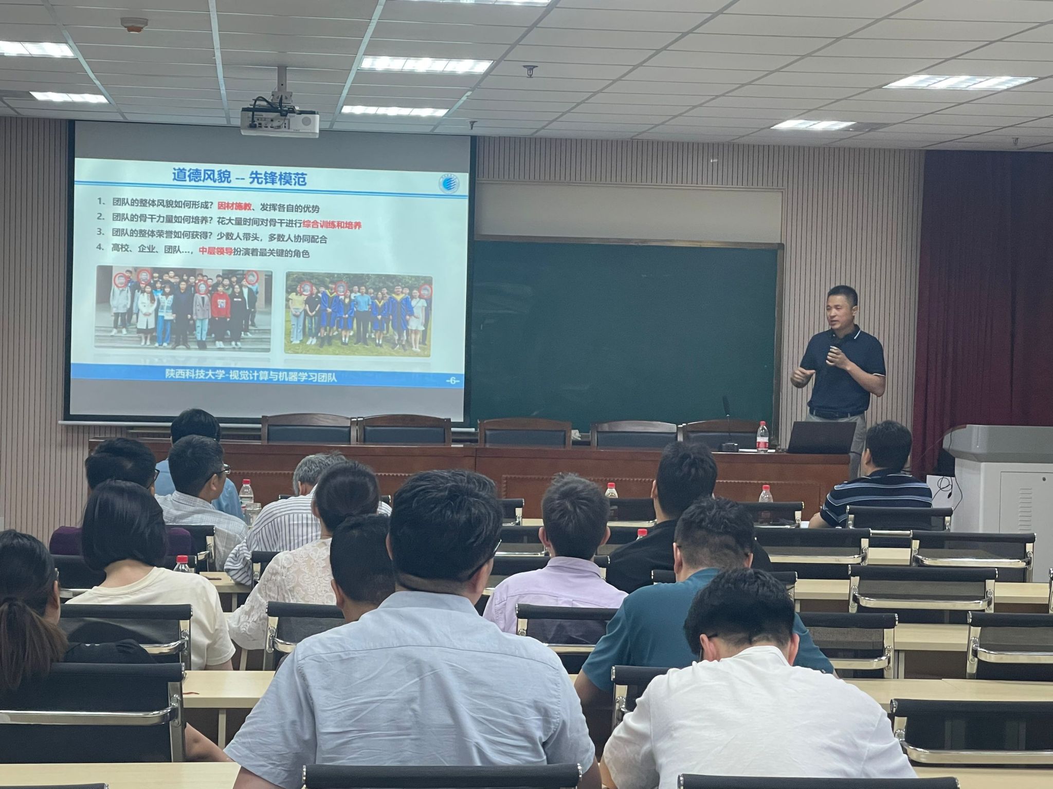會議第二階段,邀請我校第二屆研究生“最美實驗室團隊”評選一等獎獲得者,電子信息與人工智能學(xué)院雷濤教授分享研究生科研團隊合作的經(jīng)驗與技巧。雷教授首先講了團隊組建的思考,隨后從幾個方面講了團隊建設(shè),并指出研究生科研團隊合作是一項復(fù)雜的工作,但只要明確目標(biāo)、合理分工,建立有效的溝通渠道,培養(yǎng)團隊合作精神和處理沖突,就能使團隊合作更加高效和成功,科研團隊合作不僅可以促進研究進展,還能提高論文質(zhì)量和研究成果的影響力。